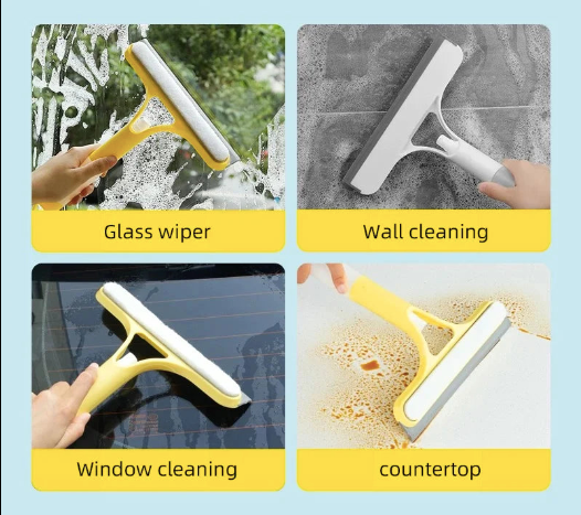 This innovative tool combines a squeegee, spray bottle, and microfiber scrubber, eliminating the need for multiple products. Its all-in-one design means you can clean efficiently without the mess of juggling various supplies, saving you time and hassle.